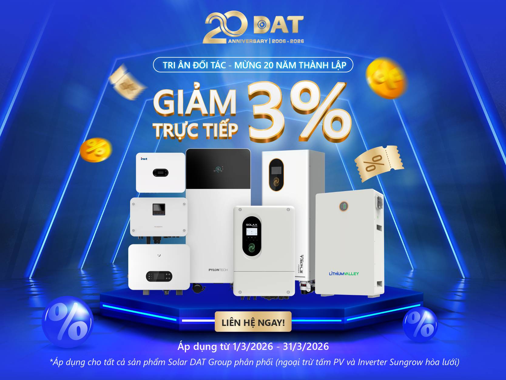 GIẢM 3% TOÀN BỘ ĐƠN HÀNG SOLAR – MỪNG KỶ NIỆM 20 NĂM THÀNH LẬP DAT GROUP