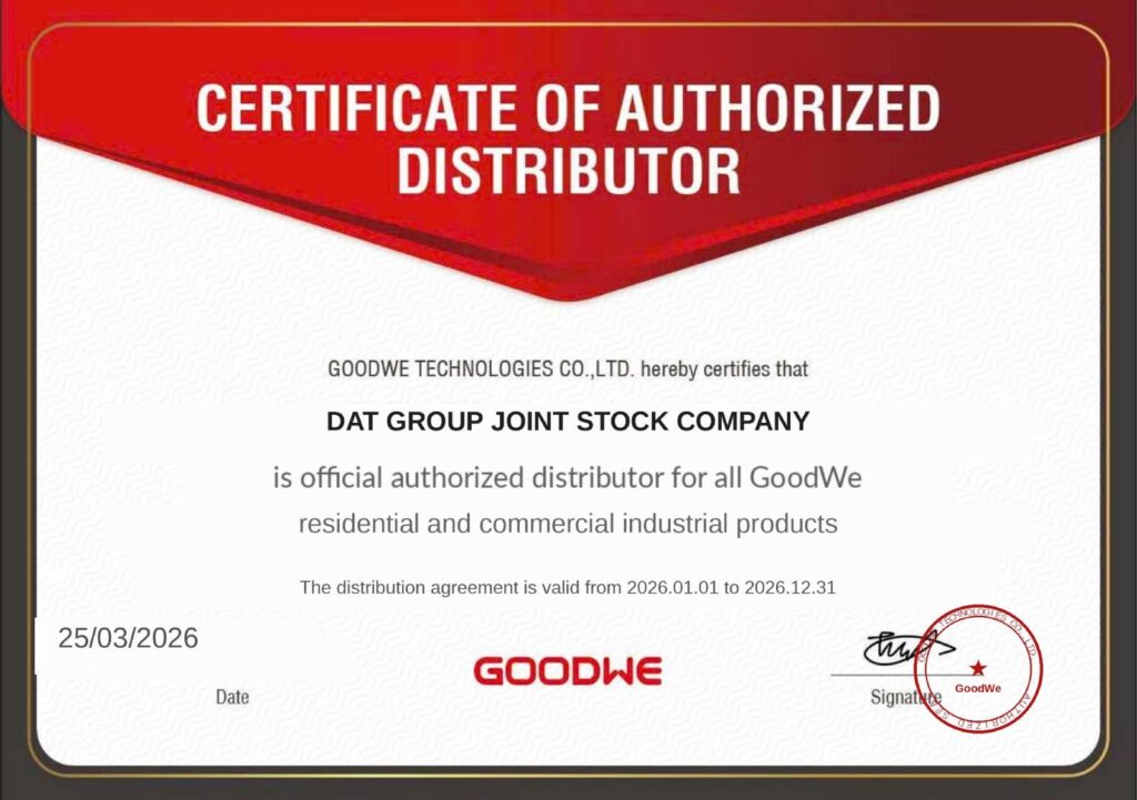 Nếu bạn đang tìm kiếm GoodWe Solar chính hãng tại Việt Nam, hãy liên hệ ngay DAT Group – đối tác phân phối & bảo hành chính thức. Chúng tôi cam kết mang đến giải pháp inverter và lưu trữ năng lượng tối ưu cho nhu cầu của bạn.